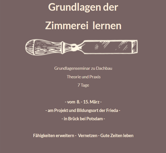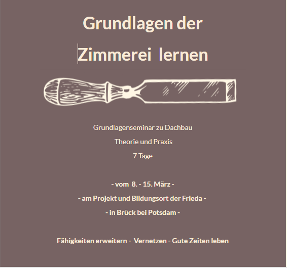 Als Frieda wollen wir stets die Möglichkeit eröffnen, Fähigkeiten zu erlernen, die Menschen freier und verbundener leben und denken lassen. Uns geht es darum, resilientere und selbstbestimmtere Gesellschaftsstrukturen zu fördern, die es Menschen wieder möglich machen sich für mehr Gemeinschaftlichkeit in ihrer unmittelbaren Umgebung und für ökologische Lebensweisen zu entscheiden.